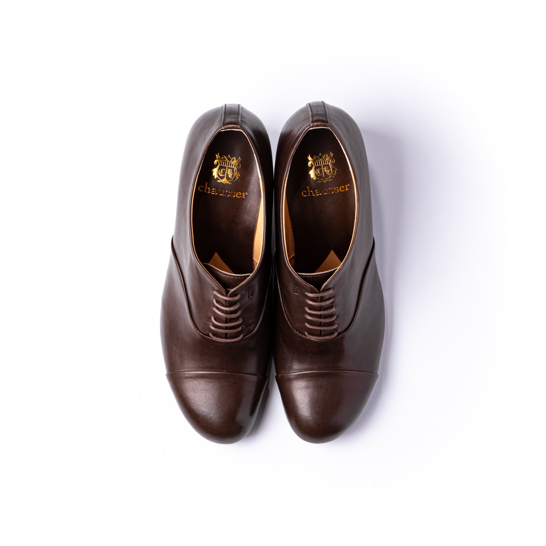 chausserのストレートチップレースアップヒールシューズはアッパーは履き馴染みの良い柔らかいカーフレザーを使用しています。スマートなストレートヒールは安定感があります。ショセ独自のフィット製法により、返りの良さとクッション性を両立させた履き心地抜群な一足です。