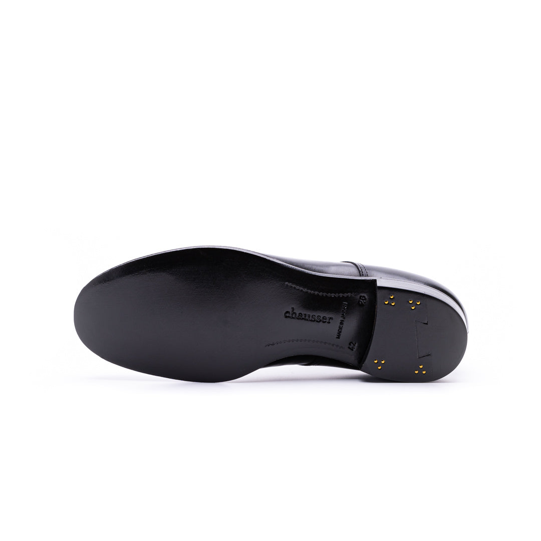つま先は丸みがあるため指の自由が利きますが、幅や甲周りはchausserの中ではタイトな作りです。製法の特性上、馴染むとハーフサイズほどゆとりが出ます。