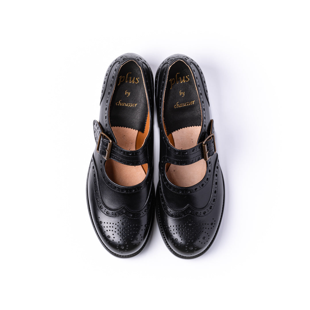 plus by chausserのワンストラップシューズは存在感のある甲部分のベルトは付け根部分にゴムが入っているため、安定感と着脱の容易さを兼ね備えています。また、グッドイヤーウェルト製法を採用することで重厚感と耐久性があり、履くほどに足に馴染んでいく一足です。