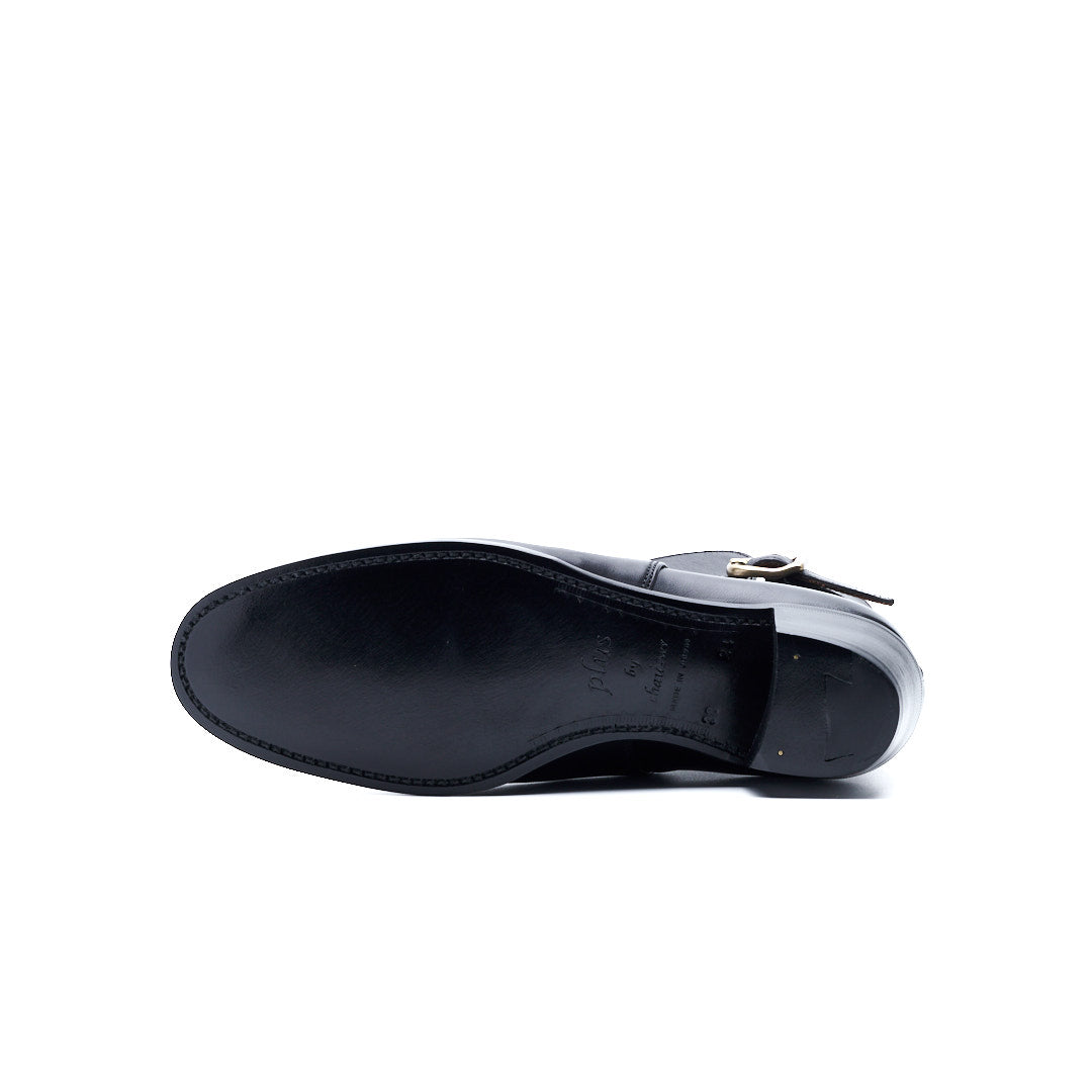 つま先がやや長めのスマートな木型を採用し、後足部にかけてシャープに絞り込んだシルエットが、美しいメリハリのあるフォルムを演出。アッパーには繊維が細かく、しなやかでありながらも独特のコシを持つ馬革(ホースレザー)を使用。足にしっかりとフィットし、履くたびに柔らかく馴染んでいくのが魅力です。製法にはグッドイヤーウェルトを採用しており、重厚感のある佇まいと高い耐久性を実現。履き込むほどに足に沿うような心地よさが生まれます。ヒールのあるジョッパーブーツならではのマニッシュな存在感と、女性らしいエレガントさを両立した一足。