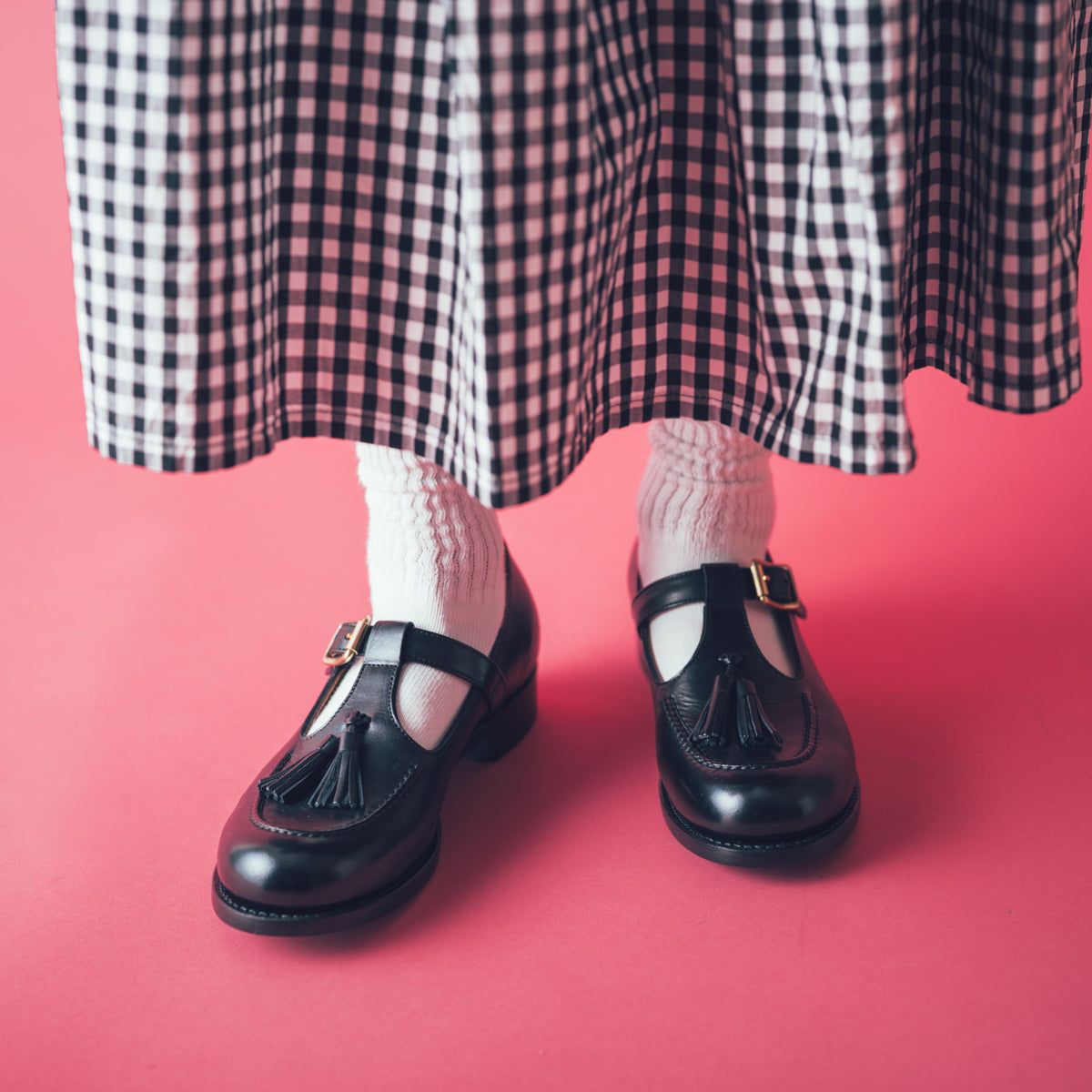plus by chausserのタッセル付きTストラップシューズはクラシックな雰囲気と上品なデザインが魅力的です。甲部にはUモカのステッチが施され、トラッドな印象を演出。ストラップの付け根はゴム仕様のため、快適なフィット感とスムーズな着脱を実現しています。グッドイヤーウェルト製法を採用することで重厚感と耐久性があり、履くほどに足に馴染んでいく一足です。