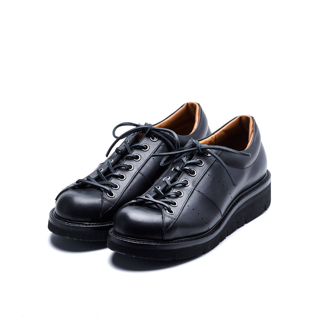 Sublime by chausserのレザースニーカーはクラシックなテニスシューズをデザインソールにしています。クッション性と返りの良いVibramソールを採用し、グッドイヤーウェルト製法の耐久性とボロネーゼ製法の柔らかい履き心地を兼ね備えた製法を採用しています。靴紐は革紐と平紐の2種類を付属しているためお好みで付け替えが可能です。