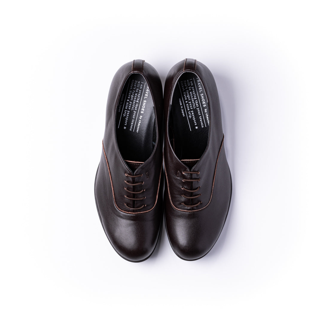 TRAVEL SHOESのレースアップヒールシューズはchausserらしいマニッシュな雰囲気を演出しています。パンツやスカートなどスタイルを問わずに履ける一足です。TRAVEL SHOESは旅をテーマにしたシリーズのため、旅先への持ち運びが便利なシューズ袋を付属しています。